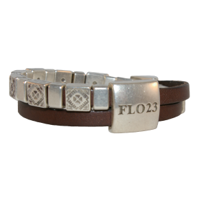 FLO23 armband met kleine schuiven op leren bandje van 5 mm breed en heeft een haak-kliksluiting.
