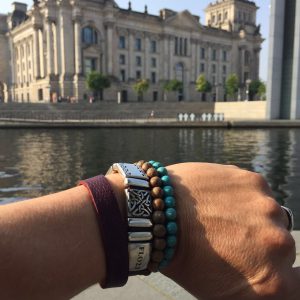Afgebeelde armbanden in de kleuren nero / orange & marron.