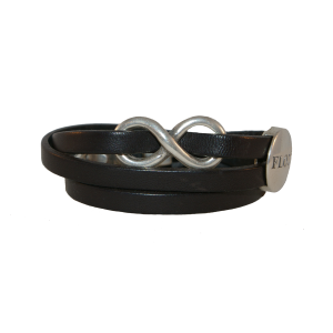 FLO23 armbandje met infinity schuif op een leren bandje van 5 mm die je om de pols wikkelt.