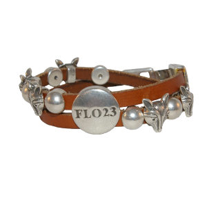 FLO23 armband met kleine schuiven op een leren bandje van 5 mm breed.
