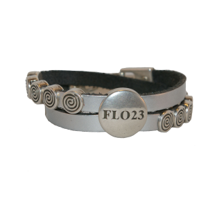 FLO23 armband met kleine schuiven op een leren bandje van 5 mm breed.
