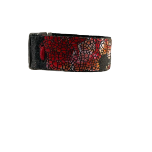 FLO23 armband gemaakt van geprint leer op een leren band.